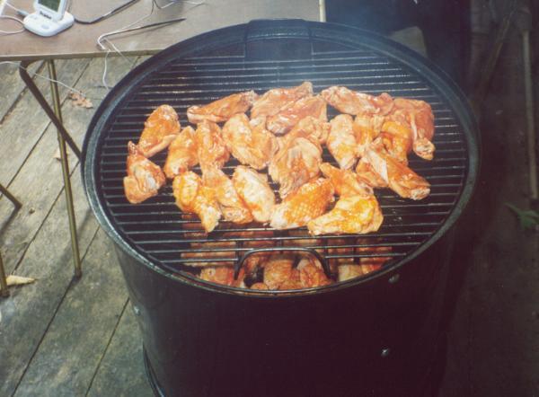 Chicken wings smoked on the Weber Smokey Mountain cooker are great. Chicken wings smoked this way are so popular with this family that I usually do a batch of chicken wings on the WSM along with with the main meal.